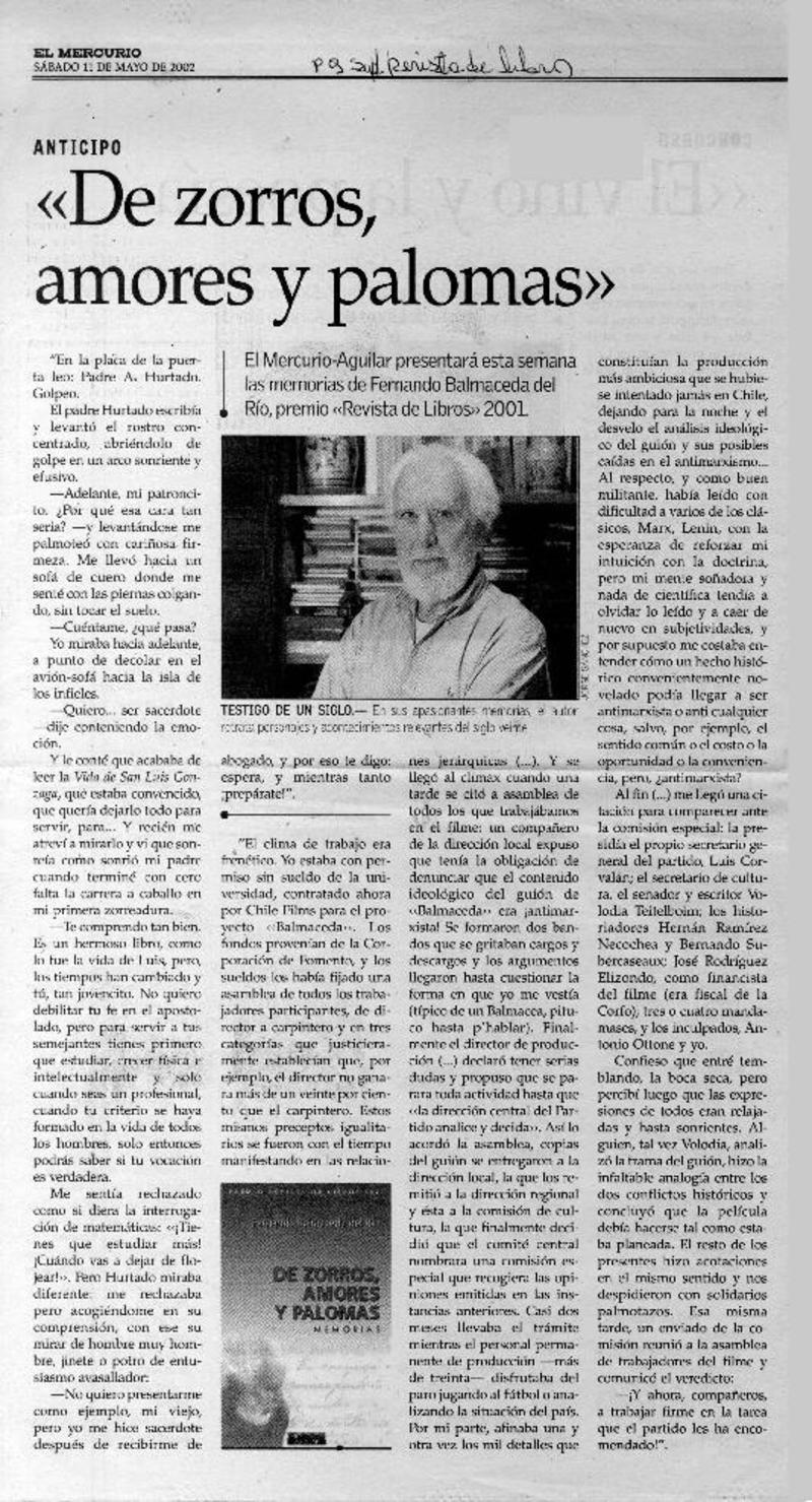 Autores chilenos - De zorros, amores y palomas - Balmaceda del Río, Fernando