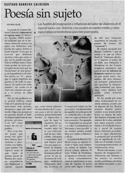 Poesía sin sujeto [artículo] Cristóbal Solari.