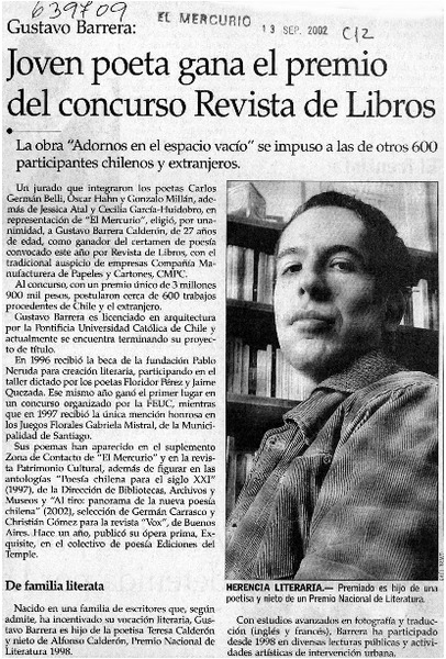 Joven poeta gana el premio del concurso Revista de Libros [artículo]