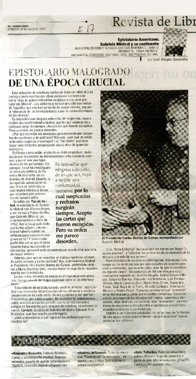 Epistolario malogrado de una época crucial [artículo] Luis Vargas Saavedra.