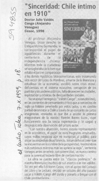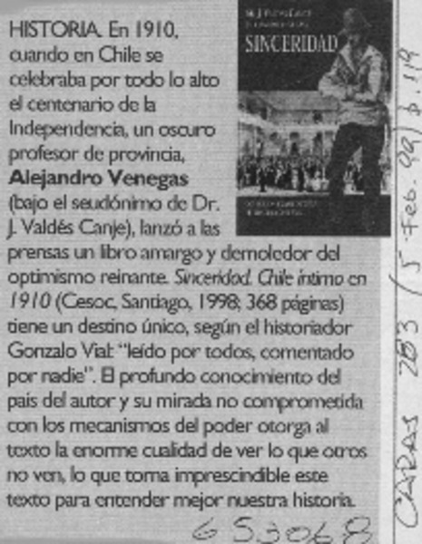 Sinceridad, Chile íntimo en 1910 [artículo]