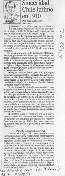 Autores chilenos - Sinceridad, Chile íntimo en 1910 - Venegas, Alejandro