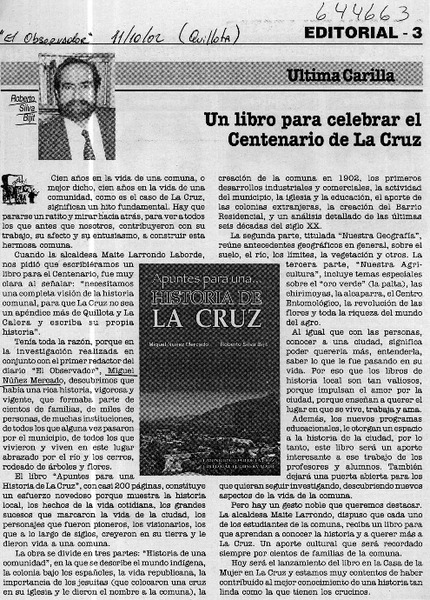 Un libro para celebrar el centenario de La Cruz [artículo] Roberto Silva Bijit