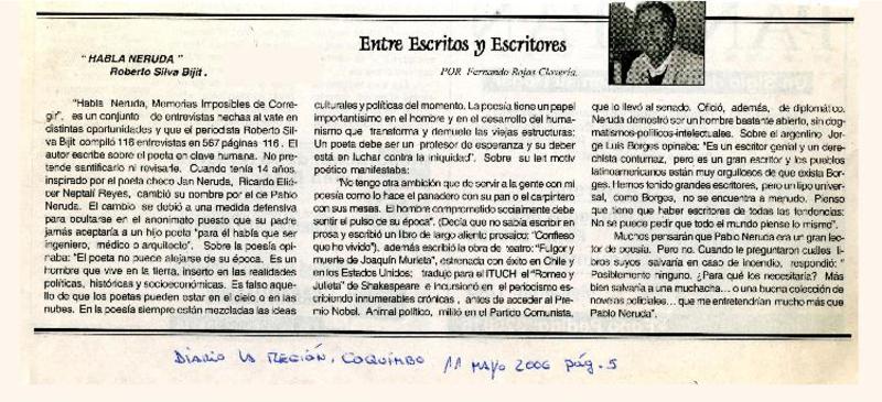 Entre escritos y escritores [artículo] por Fernando Rojas Clavería.