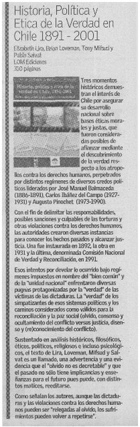 Historia, política y ética de la verdad de Chile, 1891-2001. [artículo]
