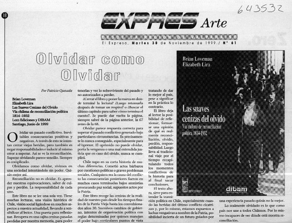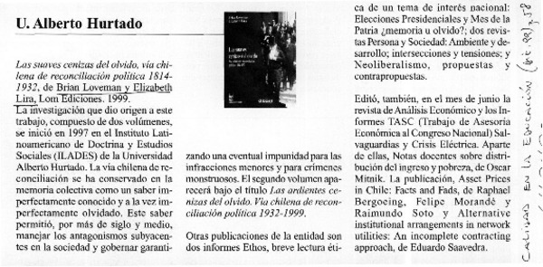 Autores chilenos - Lira, Elizabeth - Suaves cenizas del olvido - Loveman, Brian