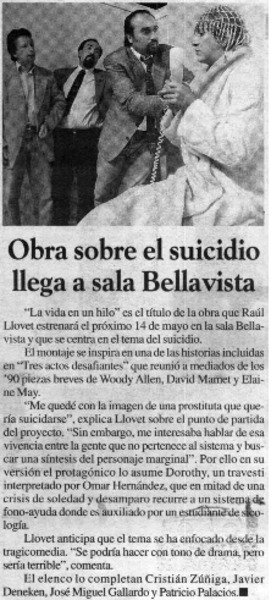 Obra sobre el suicidio llega a sala Bellavista. [artículo]