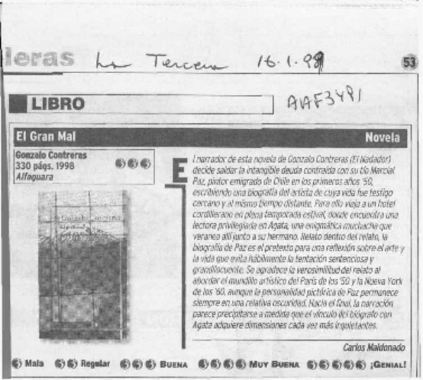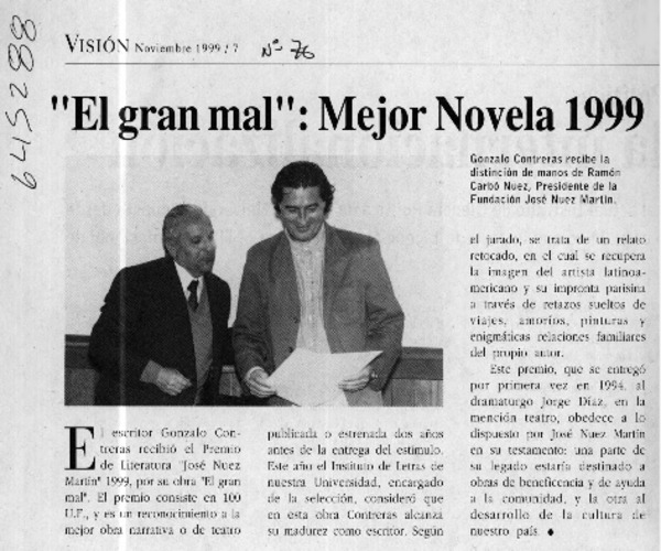 "El gran mal", mejor novela 1999 [artículo]