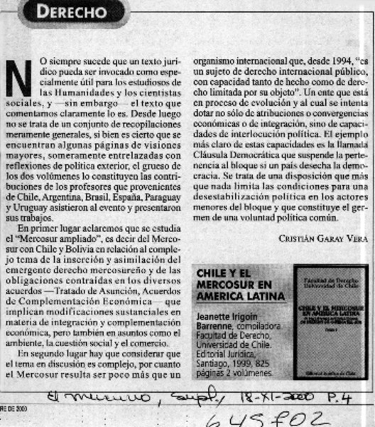Chile y el Mercosur en América Latina [artículo] Cristián Garay Vera