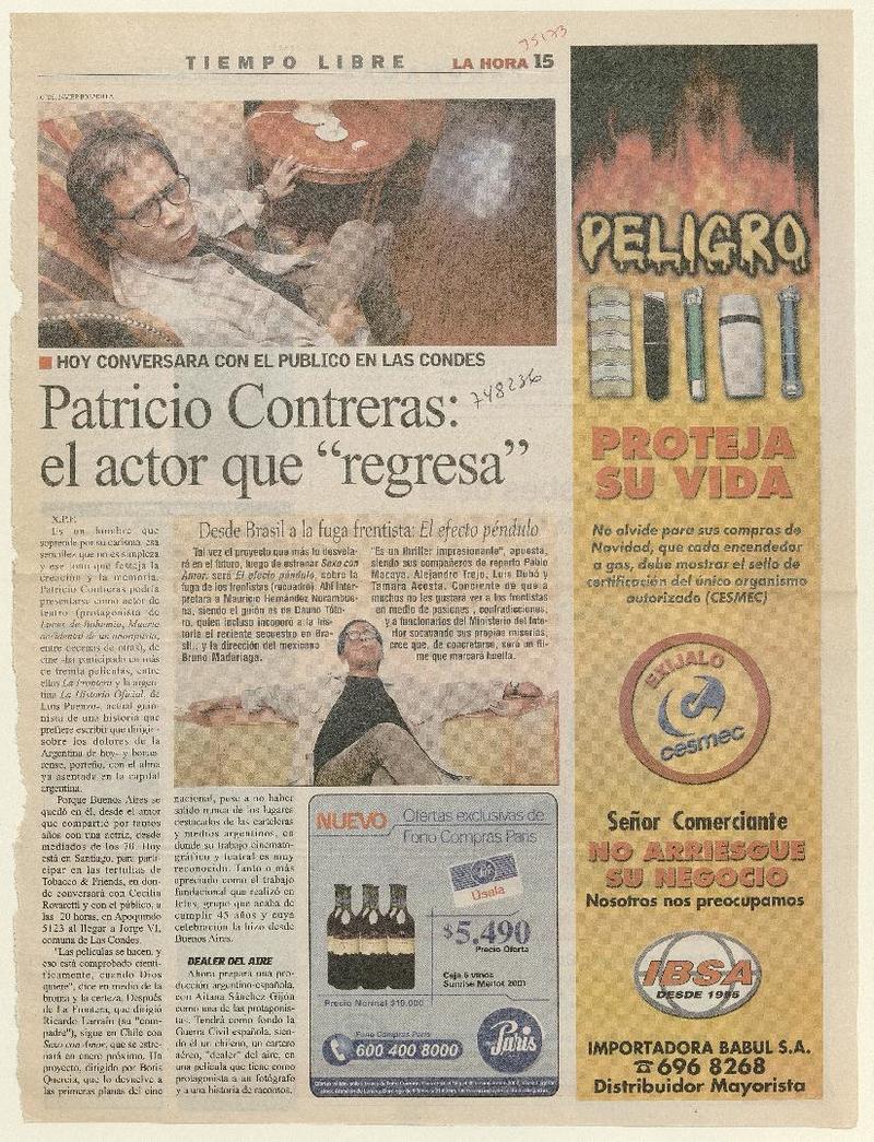 Patricio Contreras: el actor que "regresa" [artículo] X. P. F.