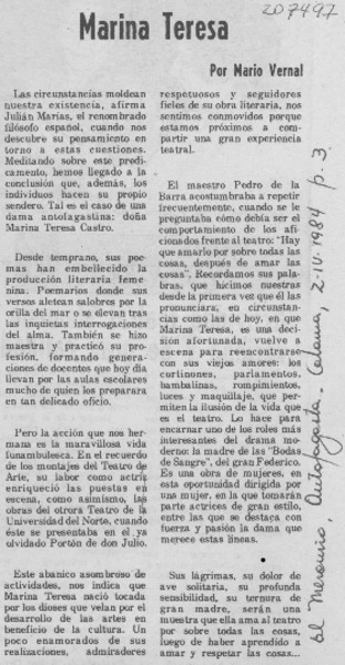 Marina Teresa [artículo] Mario Vernal.