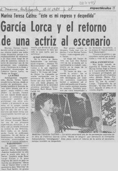 García Lorca y el retorno de una actriz al escenario [artículo].