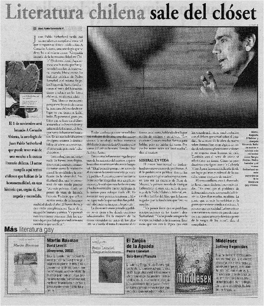 Literatura chilena sale del clóset [artículo] Juan Pablo Sarmiento P.