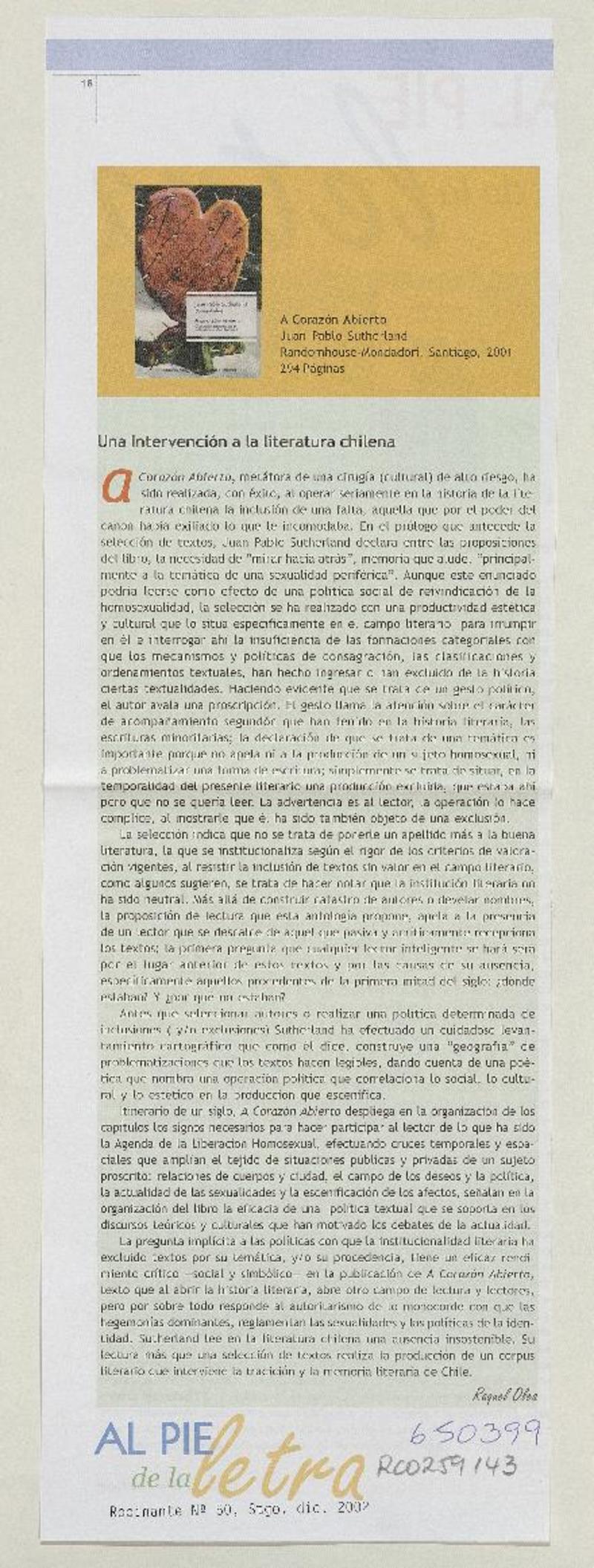 A corazón abierto [artículo] Carolina Sandoval