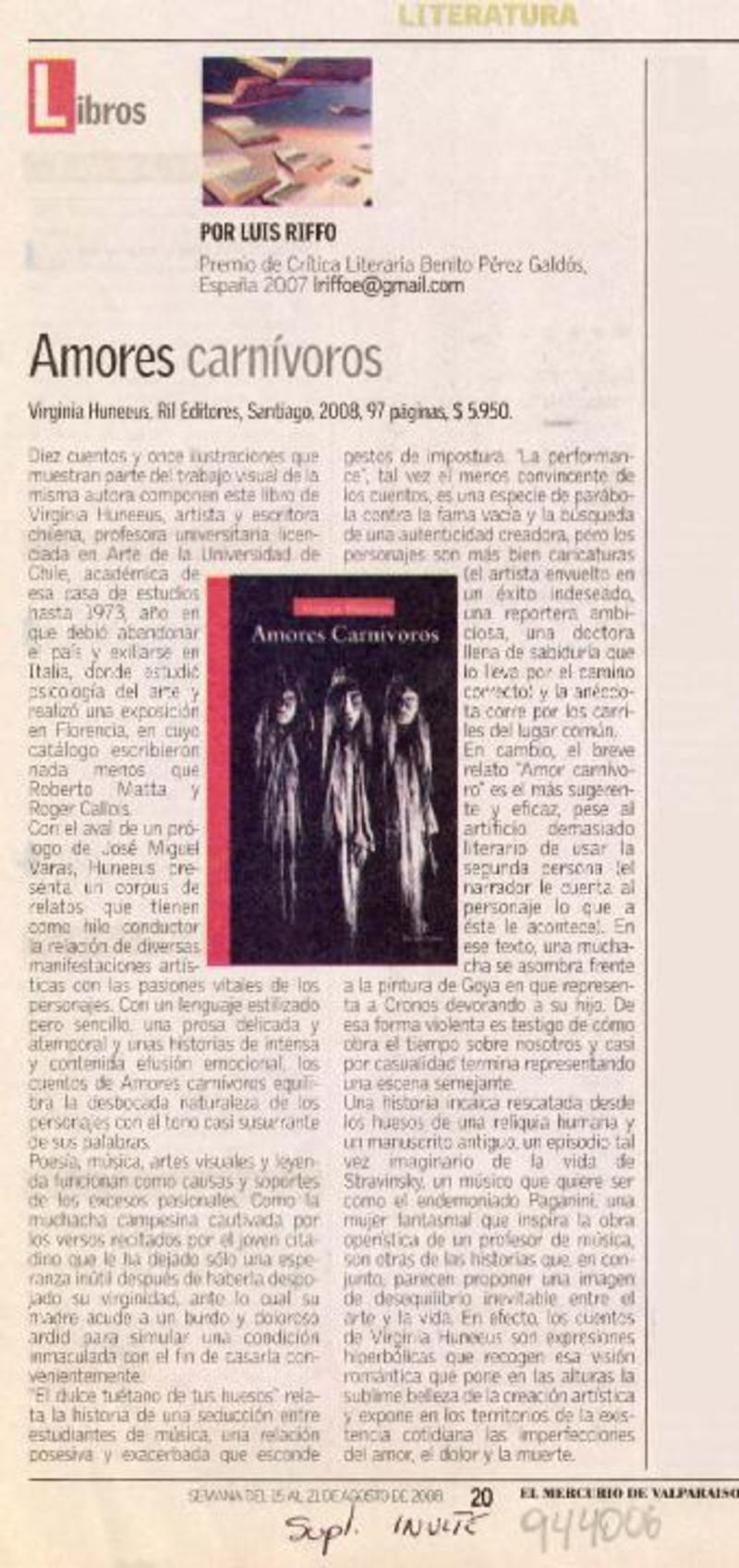 Huneeus, Virginia - Autores chilenos - Amores carnívoros