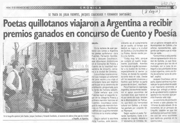 Poetas quillotanos destacan en certamen internacional. [artículo]