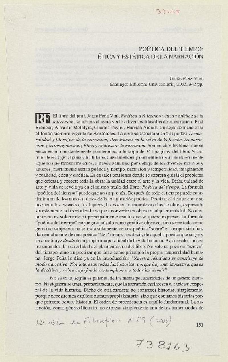 Poética del tiempo, ética y estética de la narración [artículo] Gustavo Cataldo Sanguinetti.