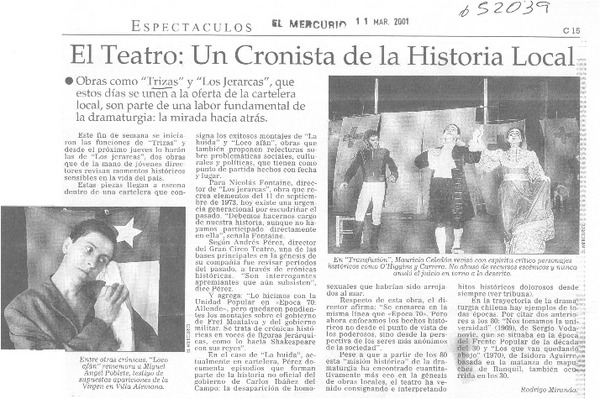 El teatro, un cronista de la historia local [artículo] Rodrigo Miranda