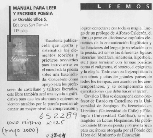 Autores chilenos - Ulloa, Osvaldo - Manual para leer y escribir poesía