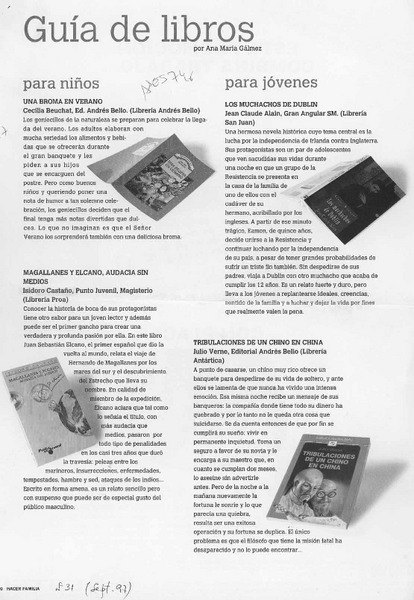 Libros para gente menuda [artículo] Marino Muñoz Lagos.