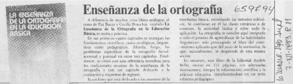 Baeza Bischoffshausen, Paz Margarita - Autoras chilenas - Beuchat, Cecilia - Enseñanza de la ortografía en la educación básica