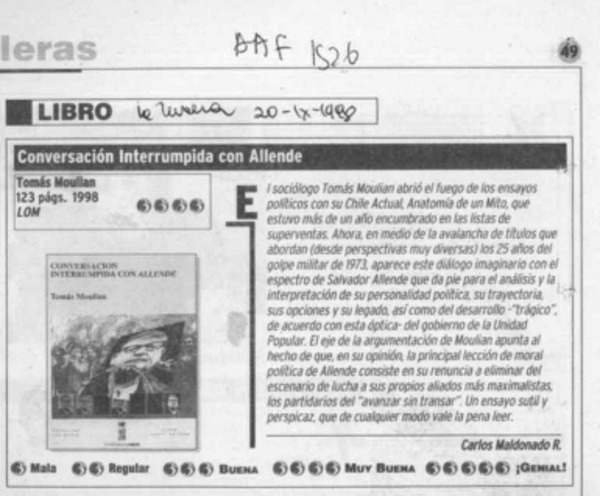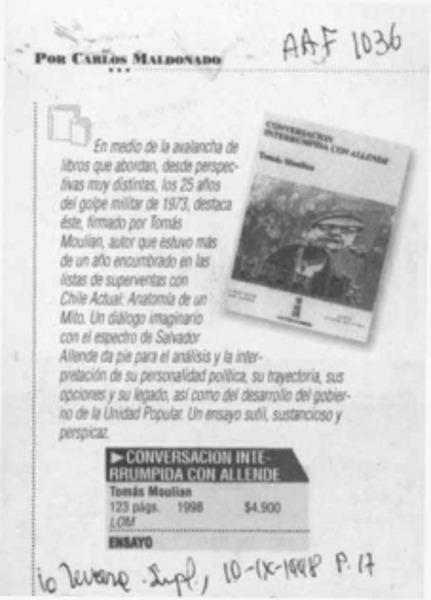 Conversacion interrumpida con Allende [artículo] Carlos Maldonado.