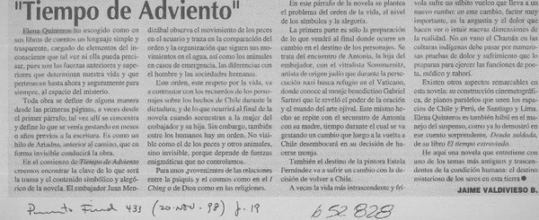 "Tiempo de adviento" [artículo] Jaime Valdivieso B.