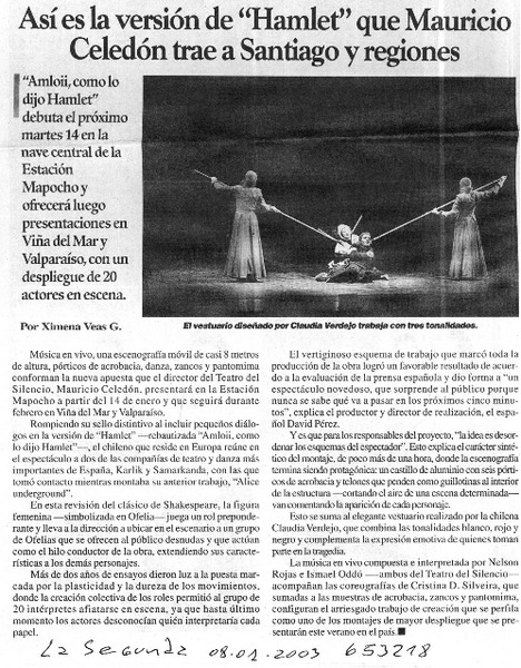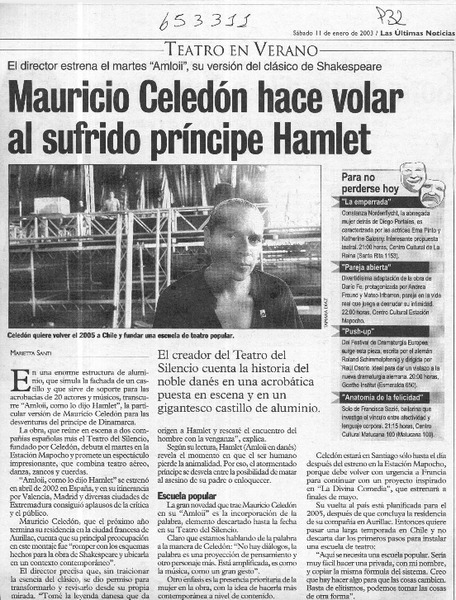 Mauricio Celedón hace volar al sufrido príncipe Hamlet [artículo] Marietta Santí