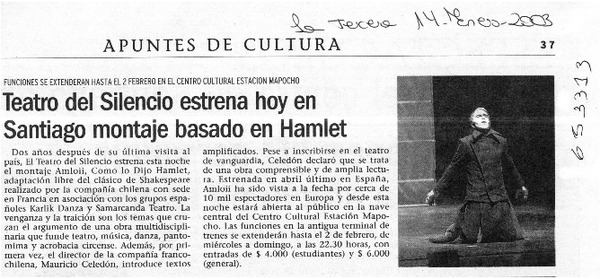 Mauricio Celedón presenta su propio Hamlet [artículo] Leopoldo Pulgar
