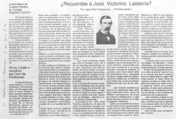 ¿Recuerdas a Jose Victorino Lastarria? [artículo] Ligia Uribe Casanueva