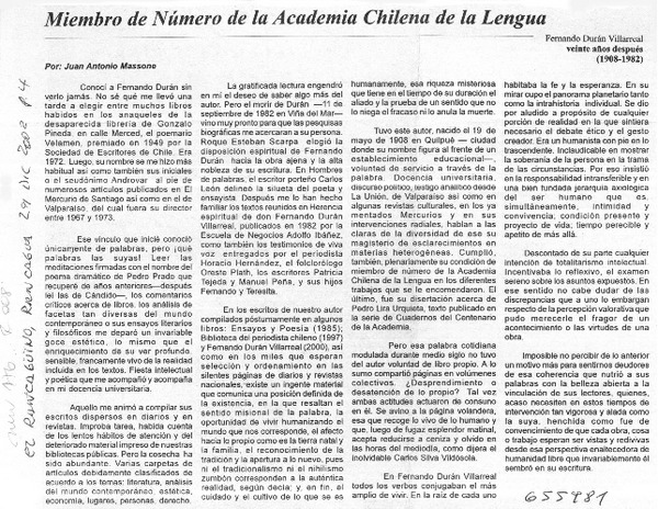 Miembro de número de la Academia chilena de la lengua. [artículo] Juan Antonio Massone.