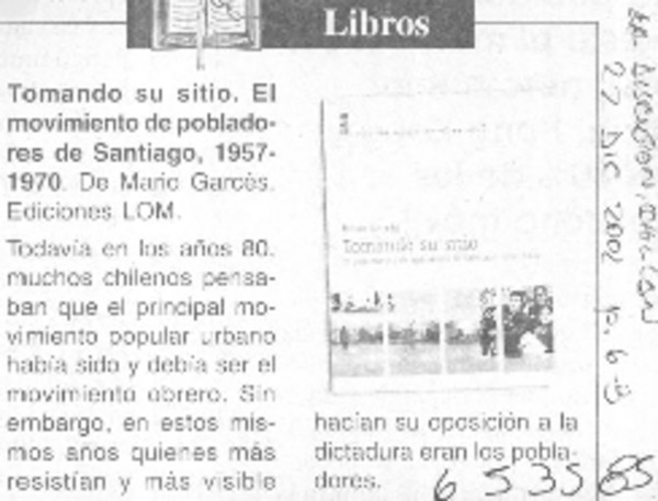 Autores chilenos - Tomando su sitio - Garcés, Mario