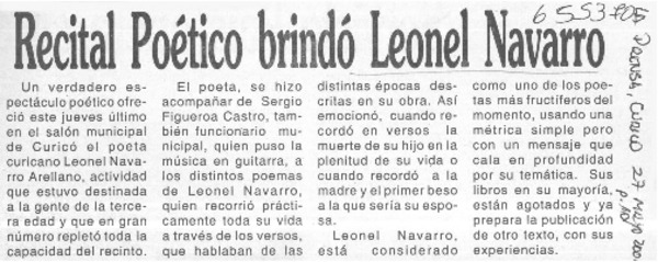 Leonel Navarro, una línea de amor [artículo] Samuel Maldonado de la Fuente.