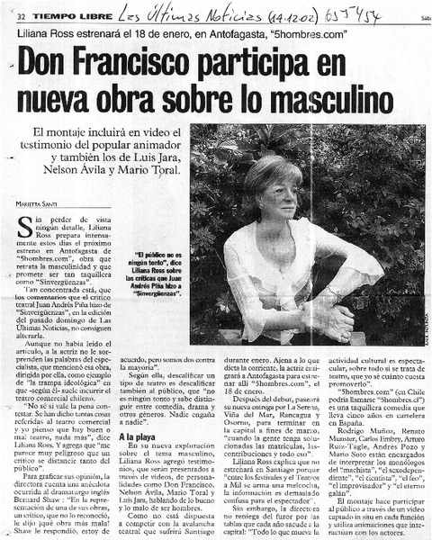 Don Francisco participa en nueva obra sobre lo masculino [artículo] Marietta Santi.