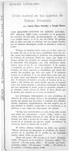 Chile austral en los cuentos de Edesio Alvarado [artículo] María Elena Morales y Sergio Bueno.