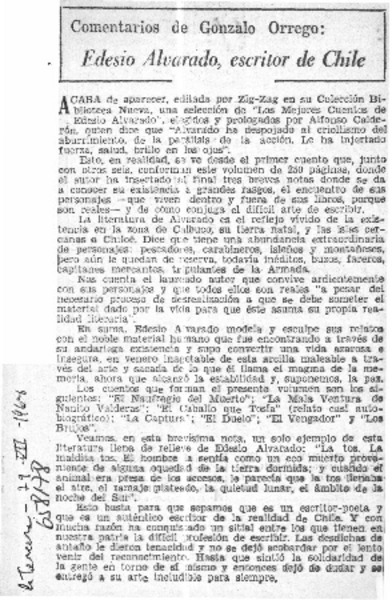 Edesio Alvarado, escritor de Chile [artículo] Gonzalo Orrego.