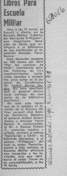Donación de libros a la Escuela Militar. [artículo]
