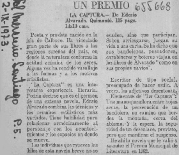 Edesio Alvarado al cine, filmaron "La captura" [artículo] Marcel Garcés.