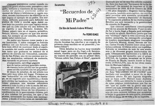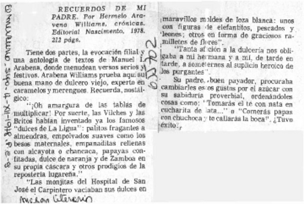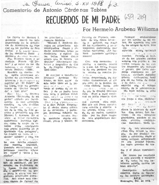 Autores chilenos - Arabena Williams, Hermelo - Recuerdos de mi padre