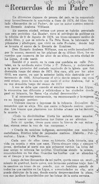"Recuerdos de mi padre" [artículo] Macodí.