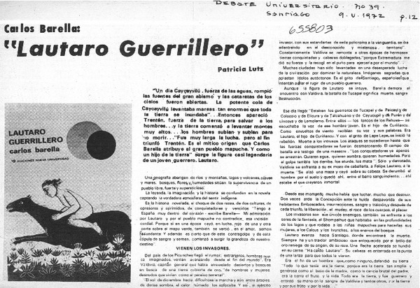 Carlos Barella, Lautaro guerrillero. [artículo] Hernán del Solar.