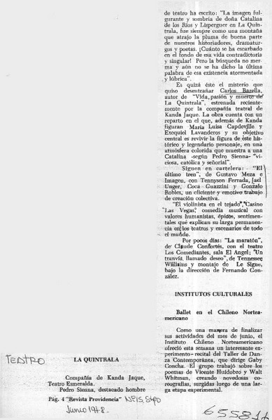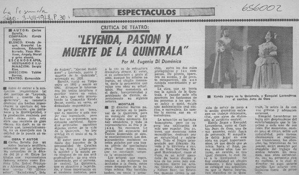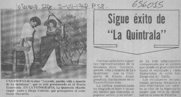 Kanda Jaque da vida teatral a La Quintrala. [artículo]