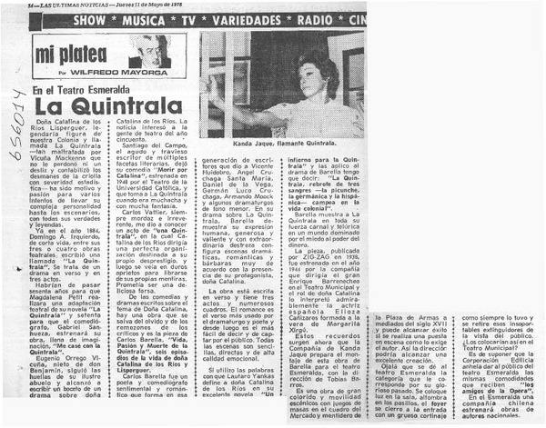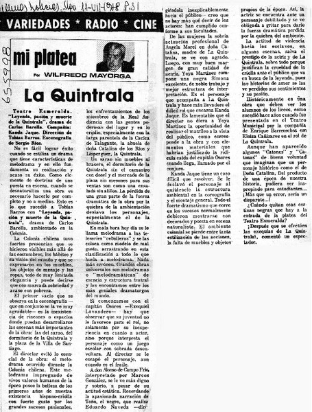 La Quintrala. [artículo] Wilfredo Mayorga.