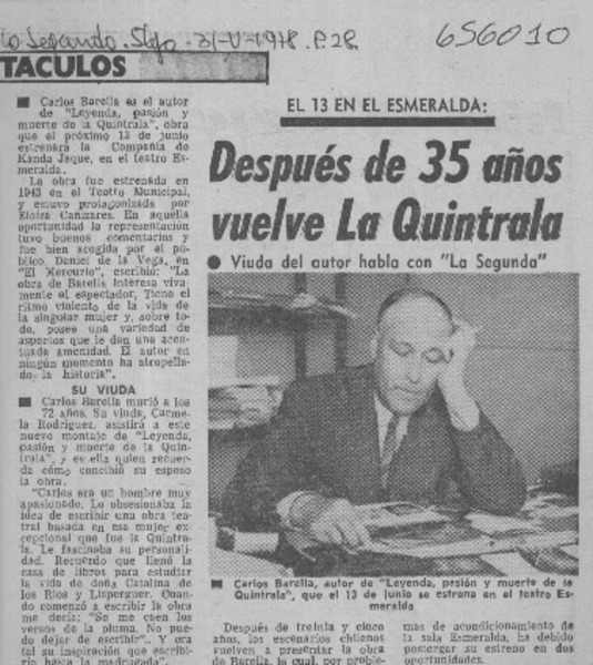 Después de 35 años vuelve La Quintrala. [artículo]