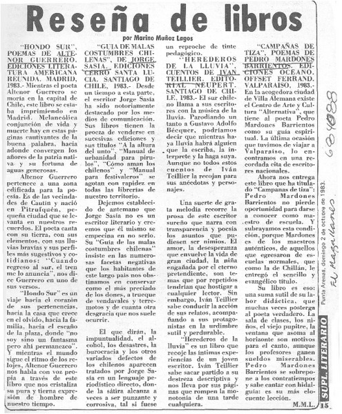 Hondo sur" [artículo] Marino Muñoz Lagos.