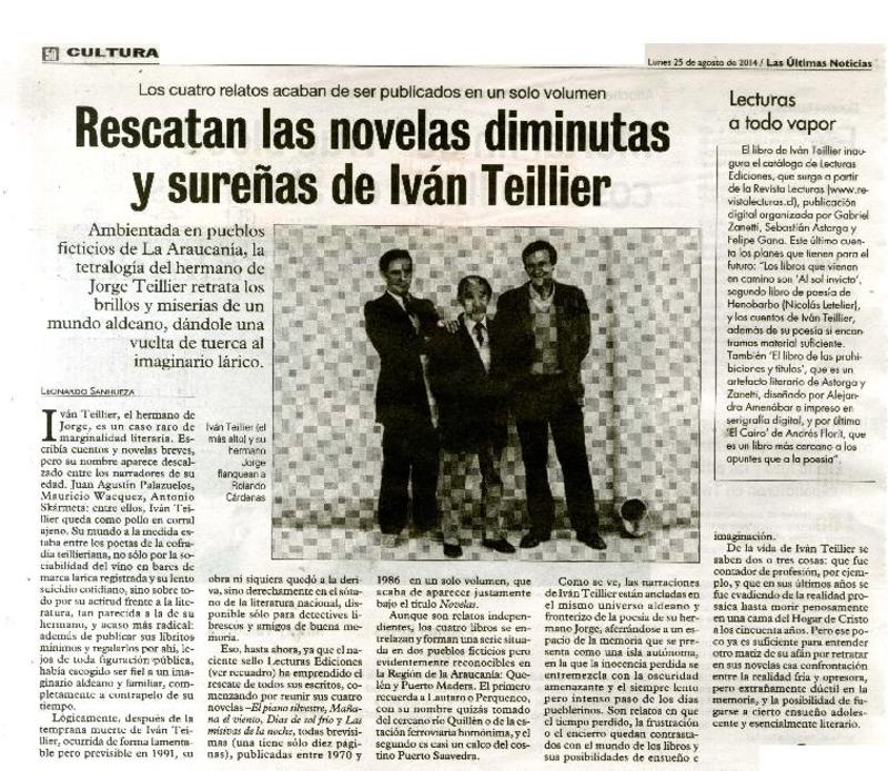 Rescatan las novelas diminutas y sureñas de Iván Teillier [artículo] Leonardo Sanhueza