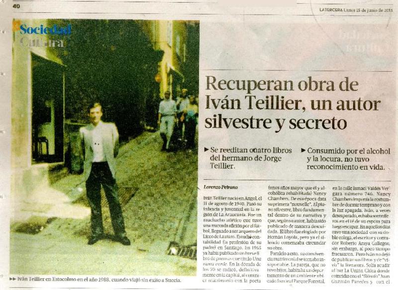 Recuperan obra de Iván Teillier, un autor silvestre y secreto [artículo] Lorenzo Peirano.