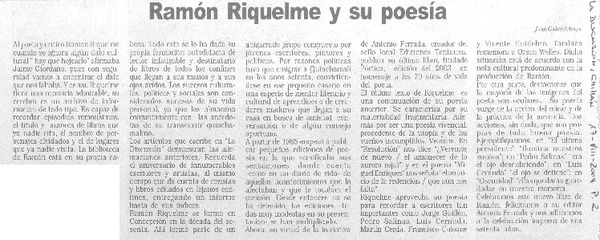 Ramón Riquelme y su poesía [artículo] Juan Gabriel Araya.