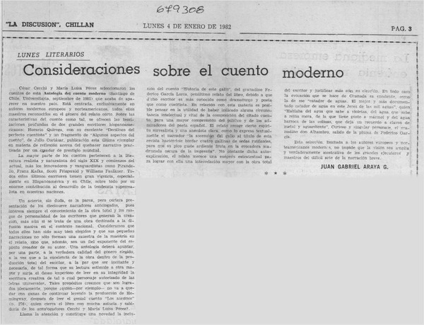 Consideraciones sobre el cuento moderno [artículo] Juan Gabriel Araya G.
