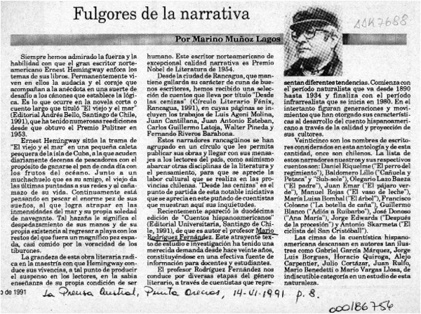Fulgores de la narrativa [artículo] Marino Muñoz Lagos.